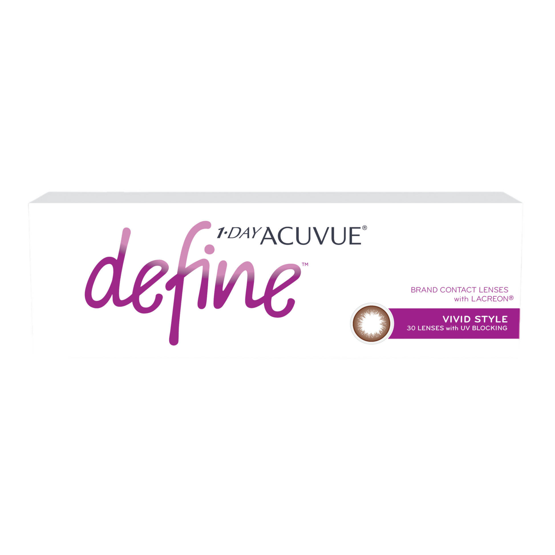 Featuring Lacreon technology, 1-Day Acuvue??Define 30 pack contact lenses provide their wearer with all-day moisture and comfort. Your eyes will look stunning as 1-Day Acuvue??Define contact lenses are designed to enhance the natural beauty of the eye, adding a natural looking definition to the limbal ring.