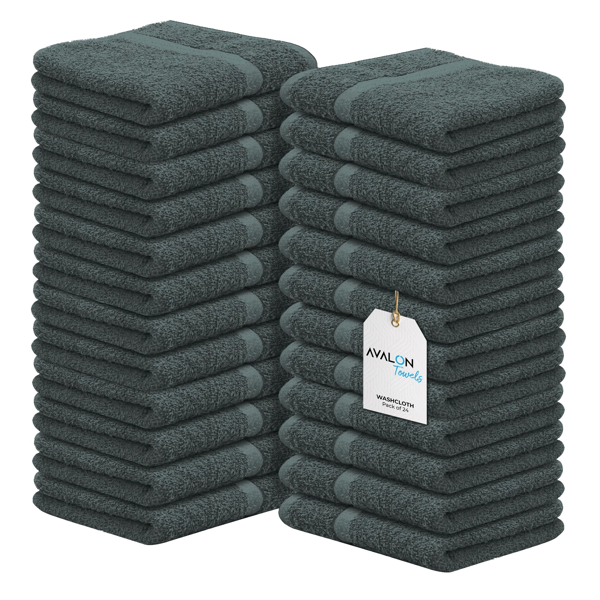 Avalon Towels Cotton Washcloths – (Pack of 24) Size 12x12 Inches Premium Ring Spun Cotton, Super Absorbent Soft Face Towels, Gym Towels, Hotel Spa Quality, Reusable Multipurpose Towels (Grey)