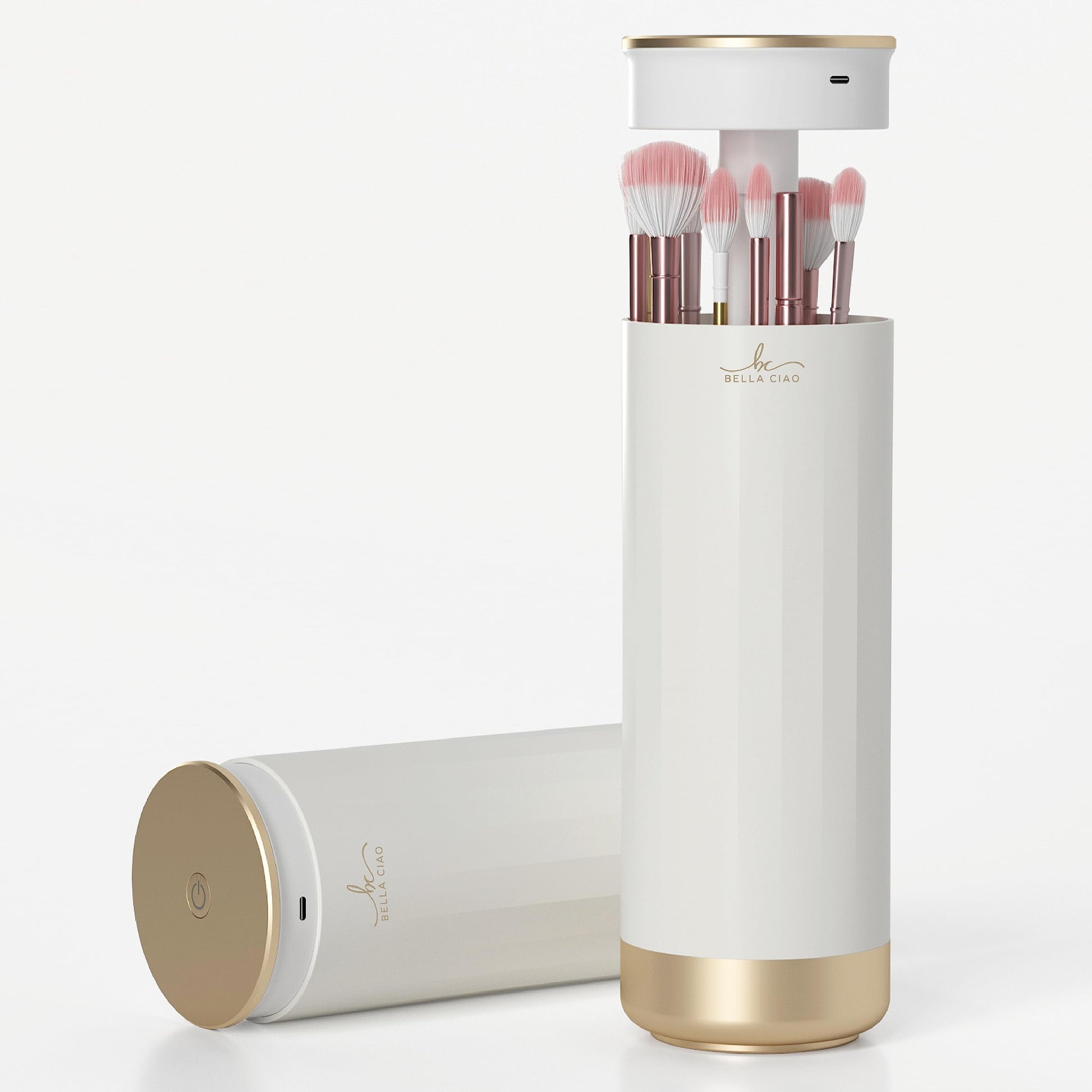 - UV Light Sanitizer: The Bella Ciao Makeup Brush Sanitizer is the perfect companion for disinfecting makeup brushes. The device utilizes a powerful UV light that sanitizes your makeup brushes in just 5 minutes. Please note that this device does not remove makeup. Brushes should still be washed to remove makeup residue.