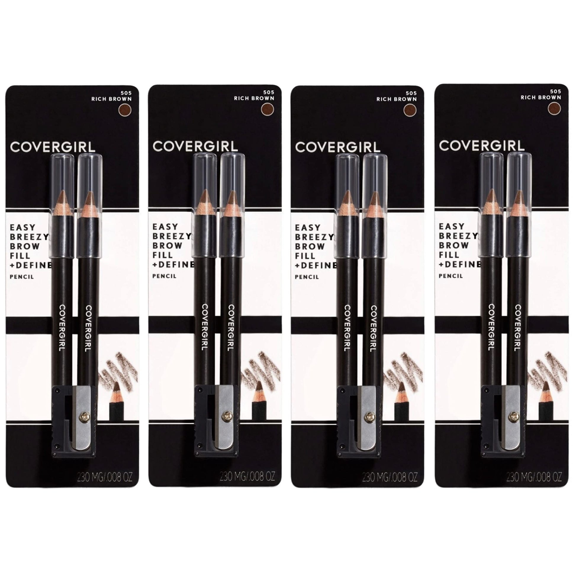 CoverGirl Easy Breezy Brow, Fill+Define Pencils [505] Rich Brown 2 ea ( Pack of 4)