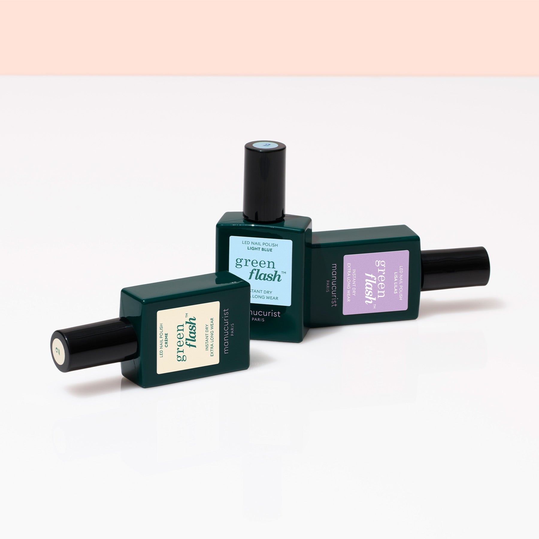 A trio of limited-edition Green Flash??nail polishes for spring/summer 2024! A cotton candy skyscape at your fingertips! Calming pastels to bring spring to your fingertips.