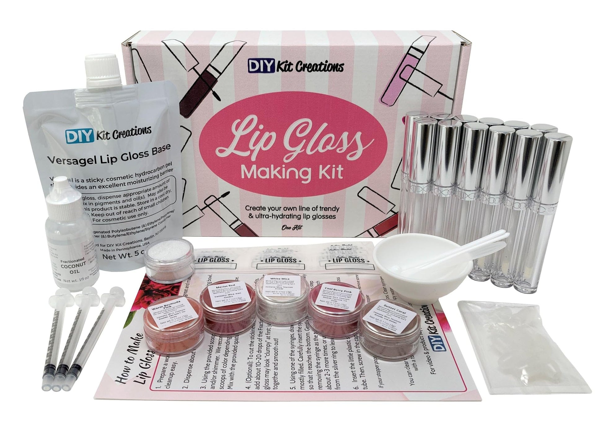 Click 'Add to Cart' to get this new and improved DIY kit, handmade in the USA and perfect for creating a custom line of trendy and perfectly unique lip glosses!
