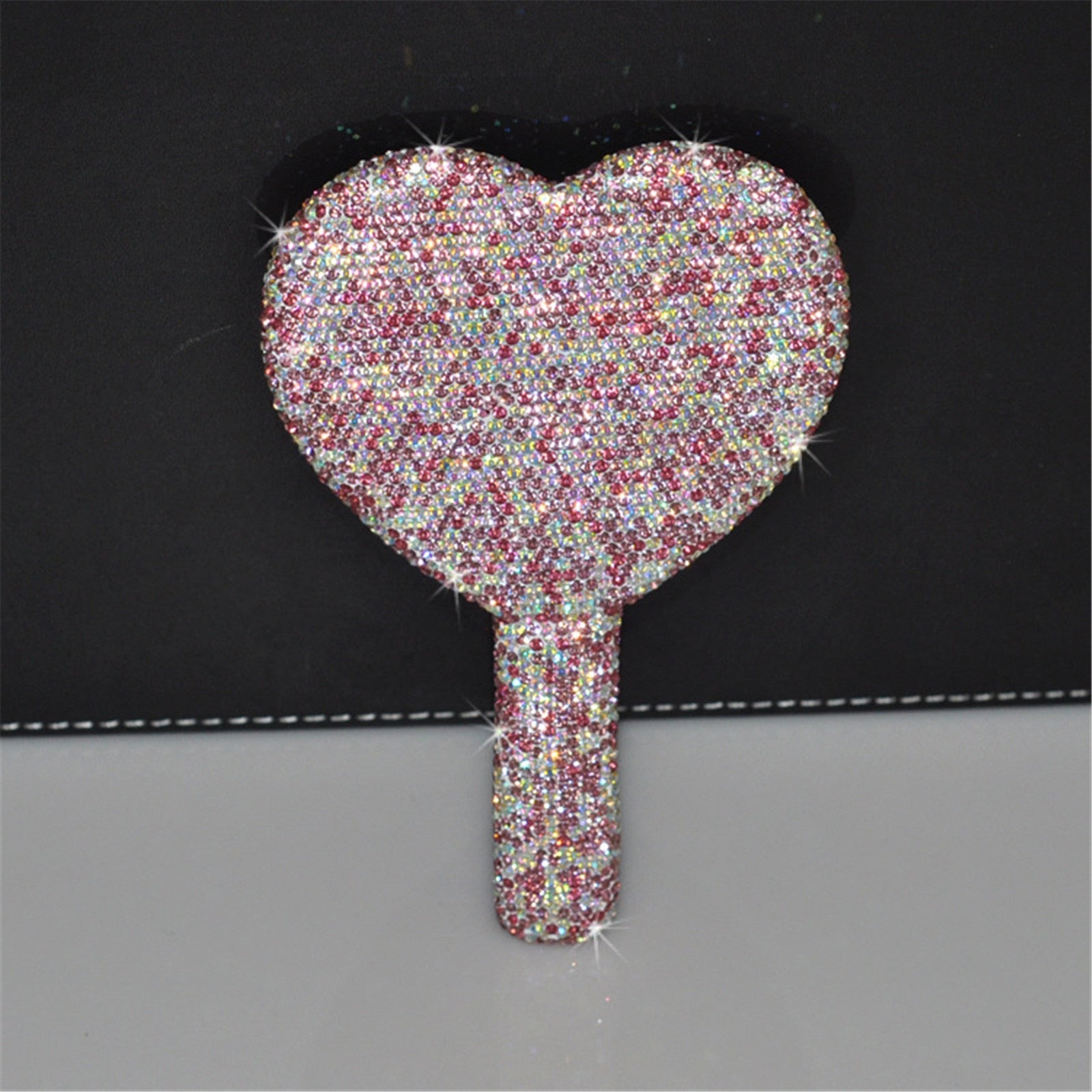 Glam up your morning routine with this stylish Rhinestone Heart Hand Mirror. Adorned with sparkling rhinestones, this hand-held mirror is the perfect tool to add a feminine, chic touch to your morning beauty routine. Compact and lightweight, it's easy to take with you wherever you go.