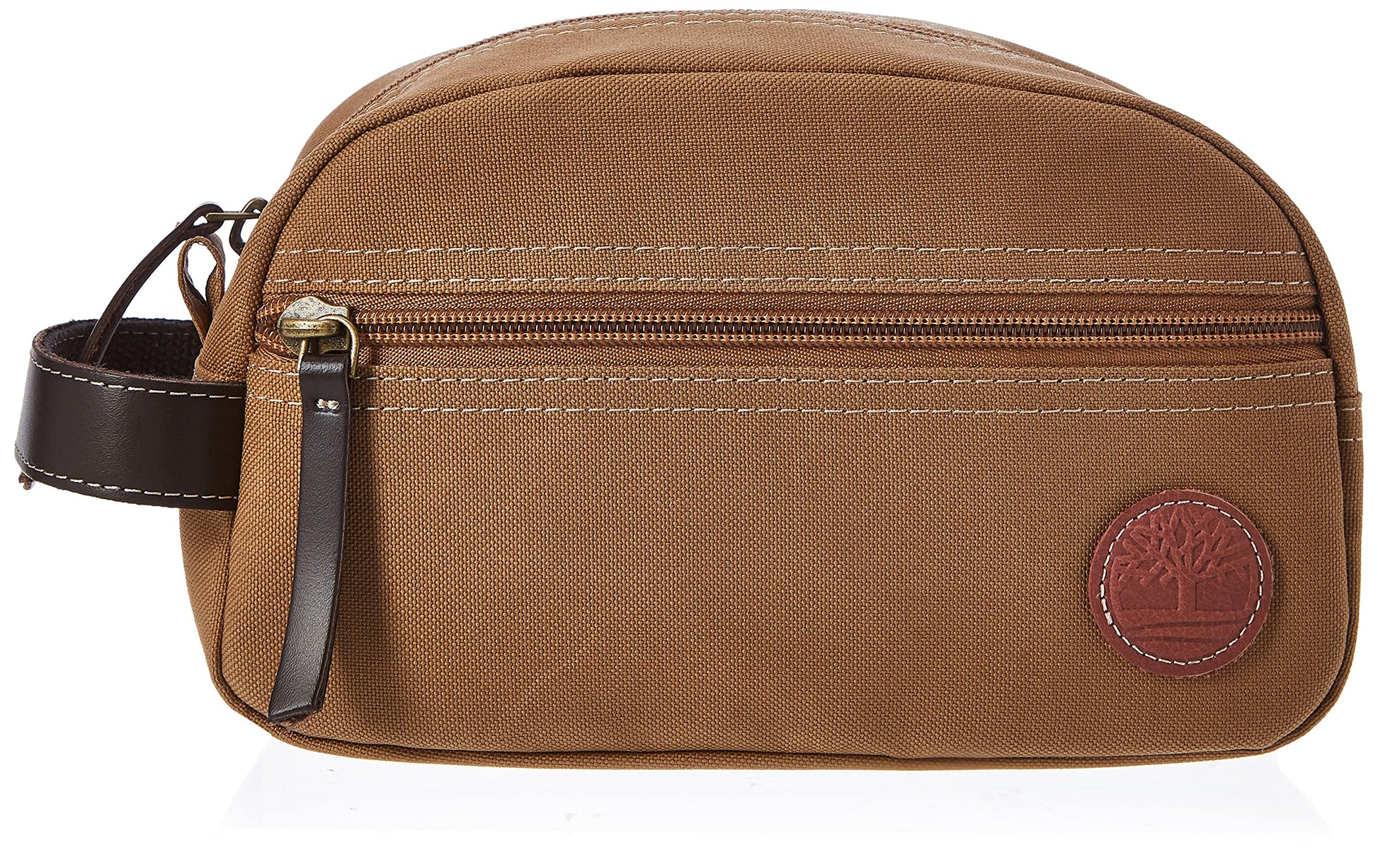 Timberland Men's Toiletry Bag Canvas Travel Kit Organizer, Khaki, One Size