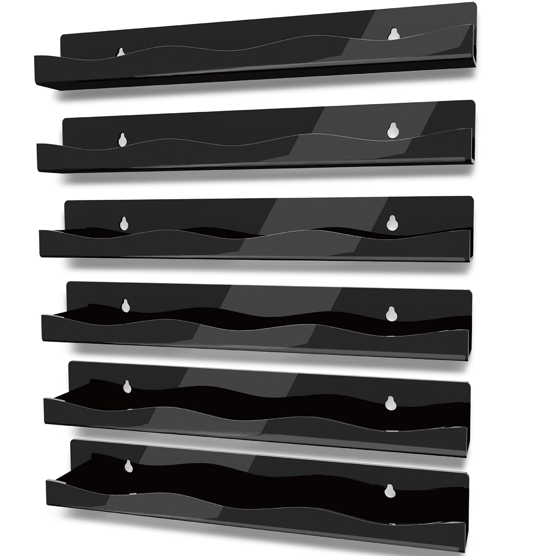 YMVV 15" Nail Polish Rack Wall Mounted Shelf,6 Pack Black Acrylic Organizer Supplies for Nail Techs,Great Display for Salons Retailers